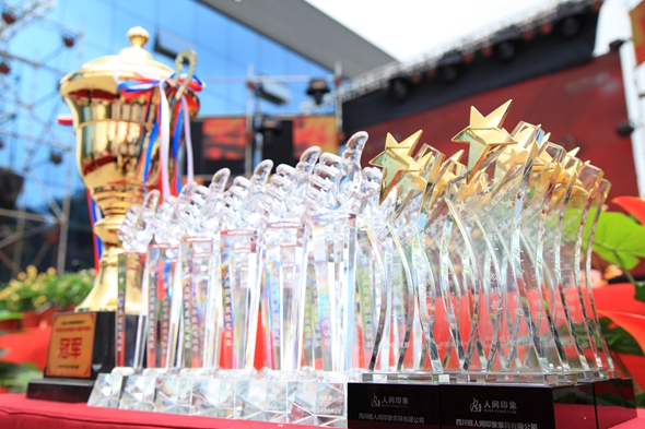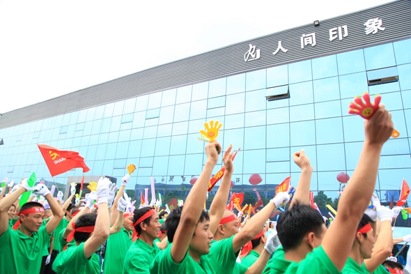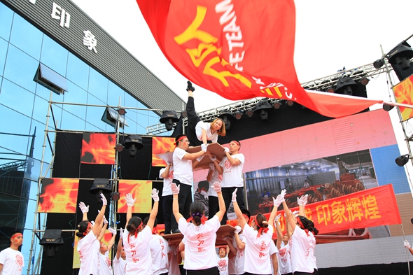 十年荣光、一群人、一条心、一件事!四川省人间印象家具有限公司结合公司成立十周年及新公司开业庆典,举办以“十年荣光,炫动中国”为主题的大型联欢晚会以及团队PK赛。