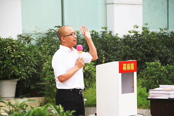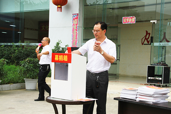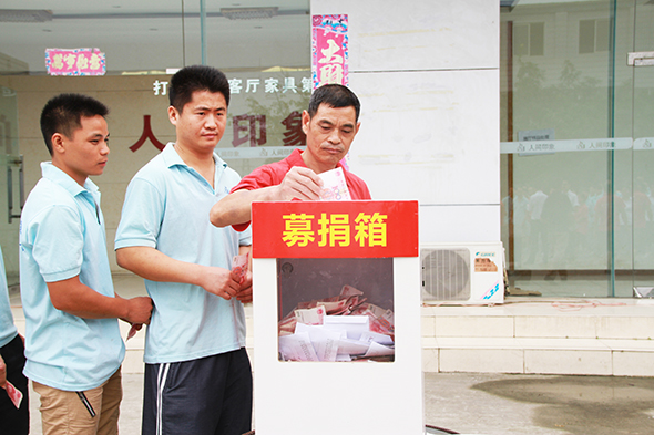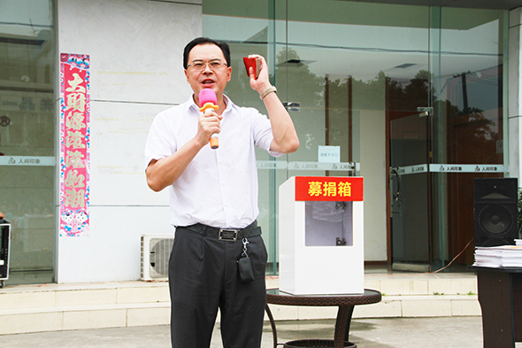 董事长蔡国辉首先将刘旭父亲的200元红包投入捐款箱,并且自己私人捐款1万元,这是此次大型募捐所接受到的第一笔捐款,这代表着一种感恩,和一种爱的传承和延续。