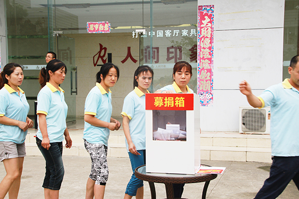 2014年8月6日,人间印象正进行着一次心灵的洗礼,公司员工纷纷积极奉献爱心,举行了一次大型募捐活动。本次募捐本着人间印象人感恩,博爱的精神感动着无数社会人士,甚至连目前已经离职的员工,以及公司供应商,得知此消息后都纷纷踊跃参与。本次募捐资金将用于扶危济困,爱心助学,捐建希望小学的用途,让更多需要帮助的人能得以帮助。