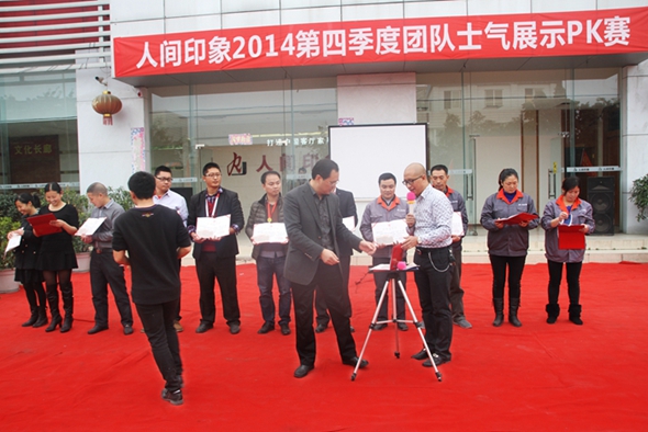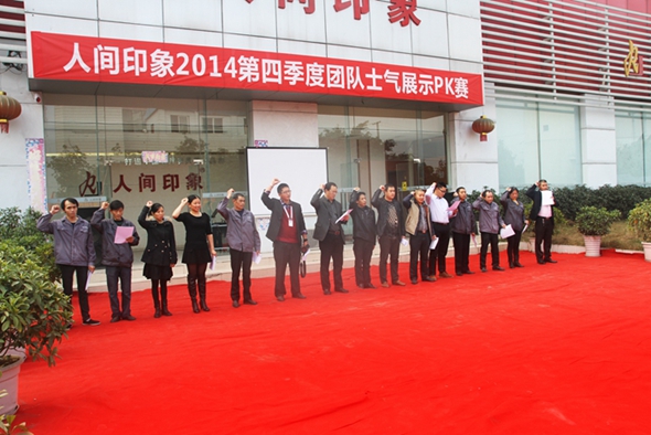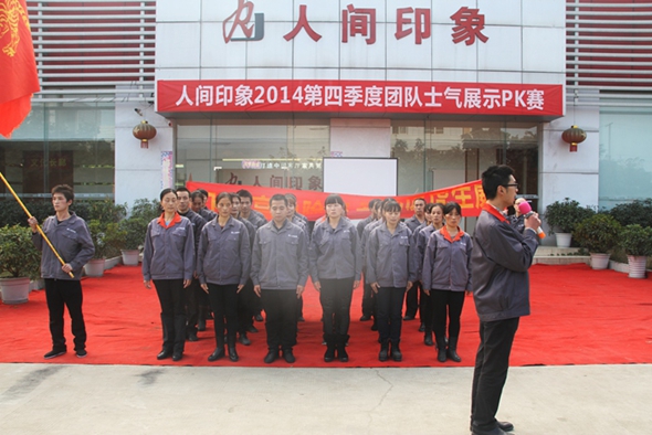2014年11月29日下午1时,人间印象第四季度团队PK展示拉开帷幕,据悉在团队的发展和建设过程中,人间印象将PK机制常态化的引入企业管理之中,在竞争中相互成长,在竞争中彼此尊重,打造了一支虎狼之师,本次PK比根据规则将评选出冠军和亚军,分别奖励其团队1500元,1000元奖金,而未能夺冠的团队各队队长将面临150-200个俯卧撑的自我惩罚,接下来就让我们一起走近这一次PK赛的现场。