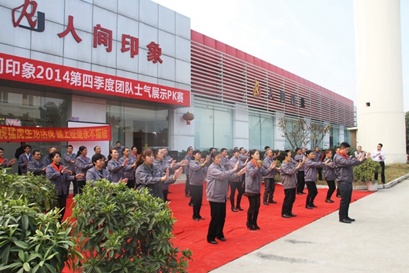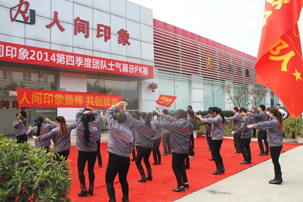 接下来各队队伍都将自己最好的状态做出了充分展示,本次PK将人间印象企业文化中的早会流程,执行六大步奏,以及人间印象的舞蹈文化串联起来,主要考核员工的精神面貌,团队动作的统一协调型和一致性,以及将执行六大步奏深刻的植入每一个人间印象人的骨髓。最后就是结合人间印象舞蹈文化,让员工在人间印象真正能做到幸福生活,快乐工作。